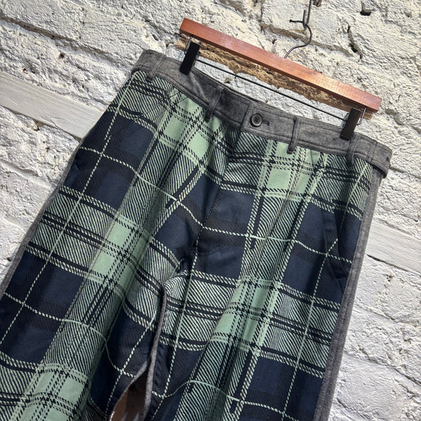 COMME DES GARCONS SHIRT GREY/MINT CHECK FRONT WOOL TROUSERS