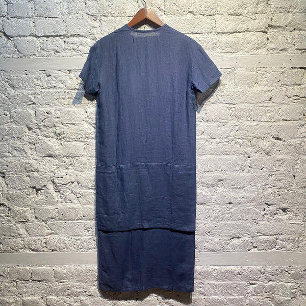 JACQUEMUS BLUE TIERED LINEN DRESS