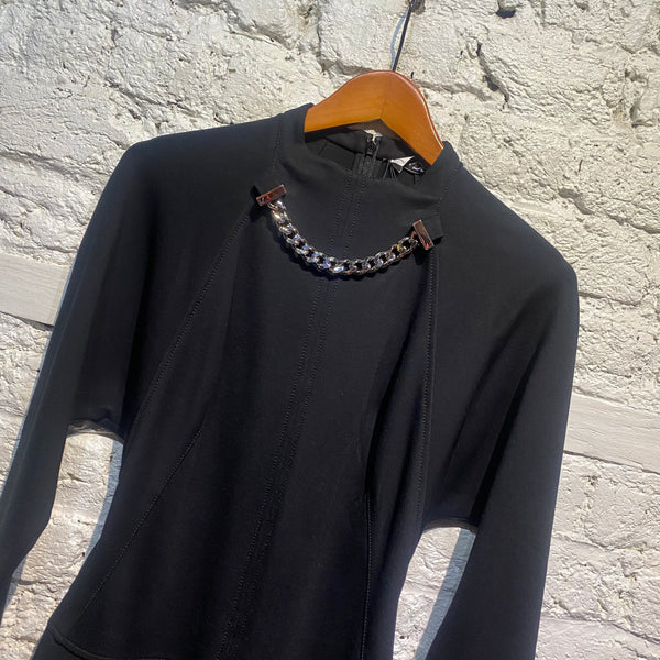 JW ANDERSON BLACK JERSEY DRESS WITH SILVER CHAIN