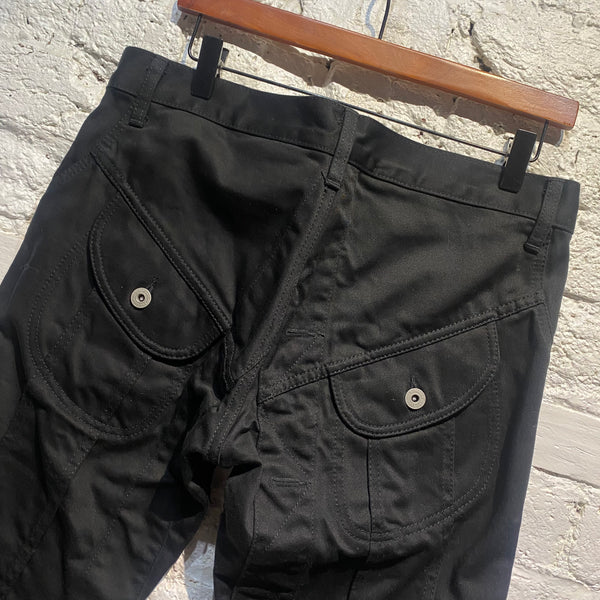JUNYA WATANABE BLACK COTTON TROUSERS WITH BUTTON DETAILS