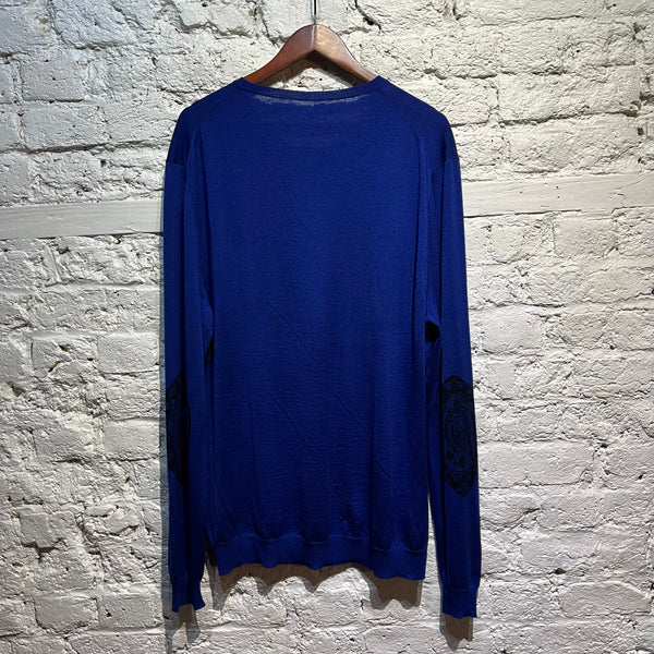 ALEXANDER MCQUEEN BLUE FINE KNIT JUMPER