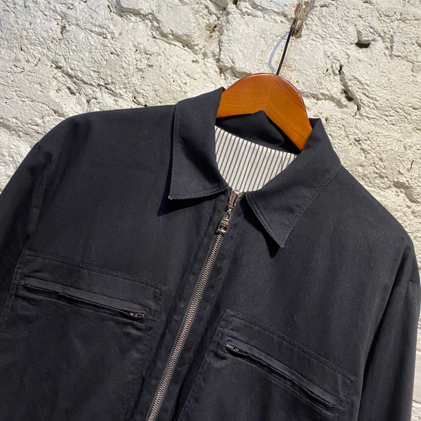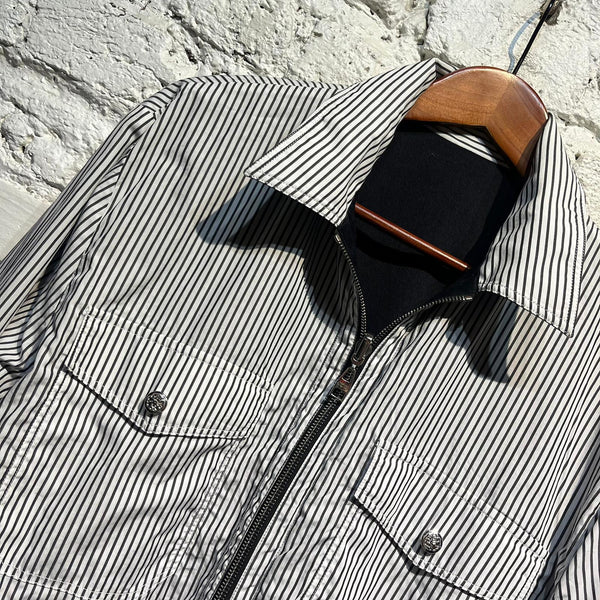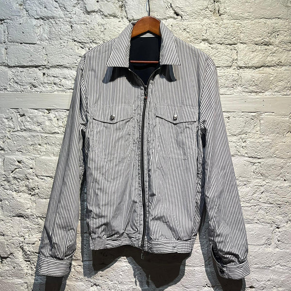 ALEXANDER MCQUEEN MIDNIGHT/STRIPED COTTON REVERSIBLE ZIP JACKET