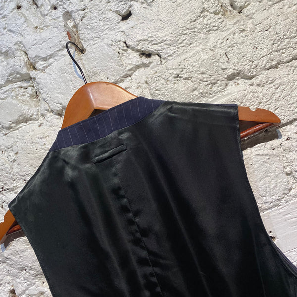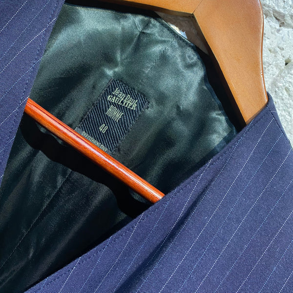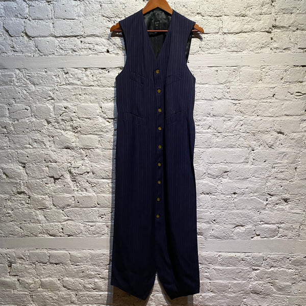 JEAN PAUL GAULTIER HOMME NAVY PINSTRIPE LONG FRONT GILET