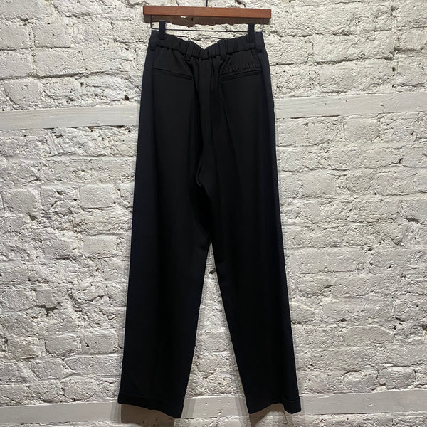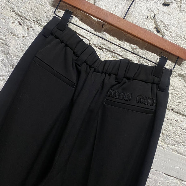 MIU MIU BLACK PLEAT FRONT WIDE LEG TROUSERS