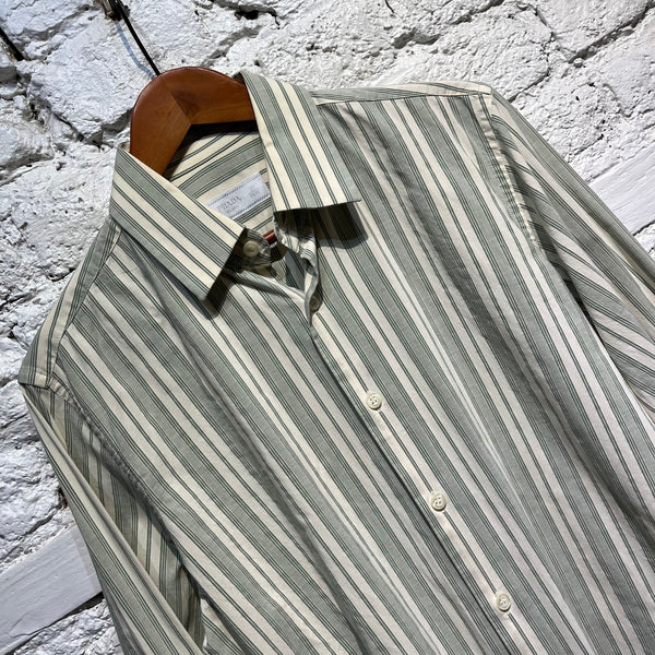 PRADA OLIVE/CREAM STRIPE SHIRT