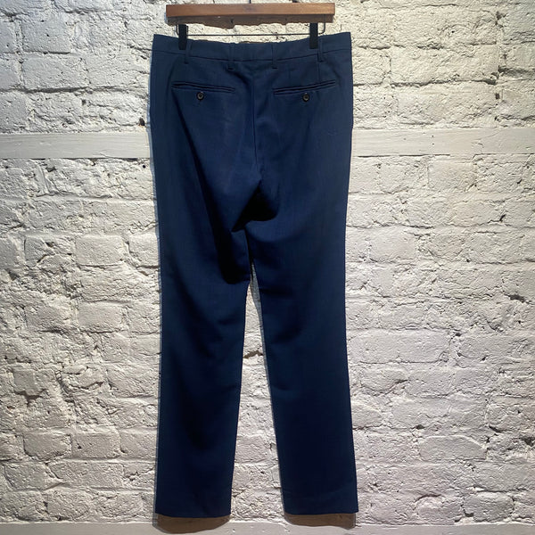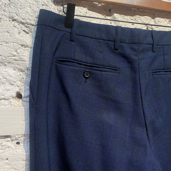 RAF SIMONS TEXTURED MARINE CHECK WOOL TROUSERS
