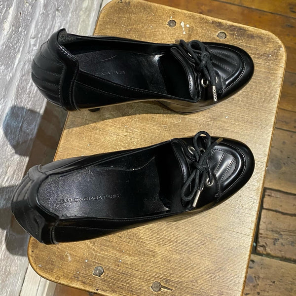 BALENCIAGA BLACK LACED COURT SHOES