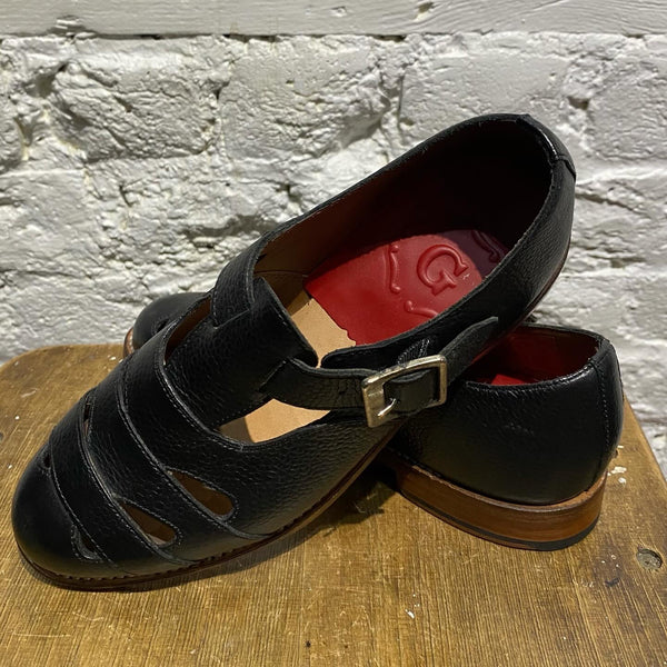 GRENSON BLACK TEXTURED LEATHER CUT OUT SHOES