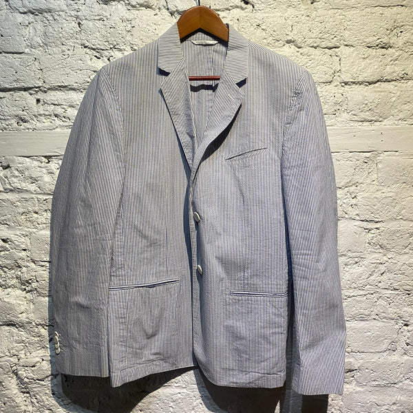 AGNES B HOMME SUMMER SUIT BLUE/WHITE SEERSUCKER