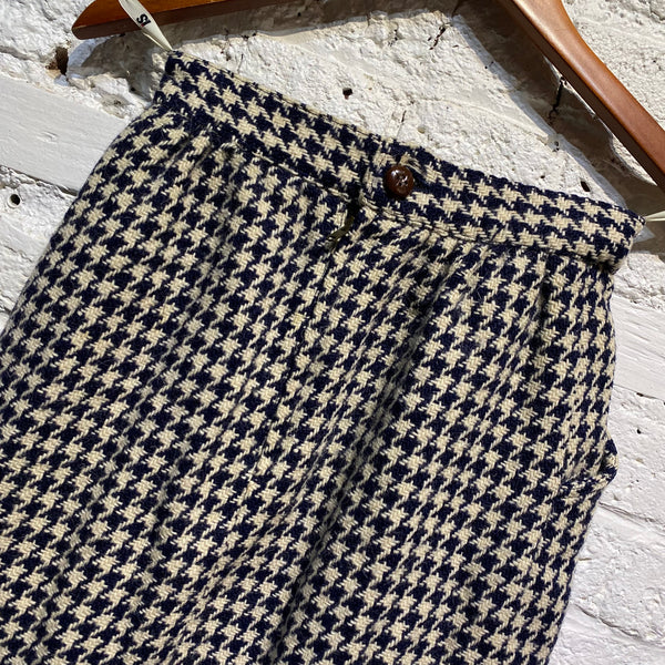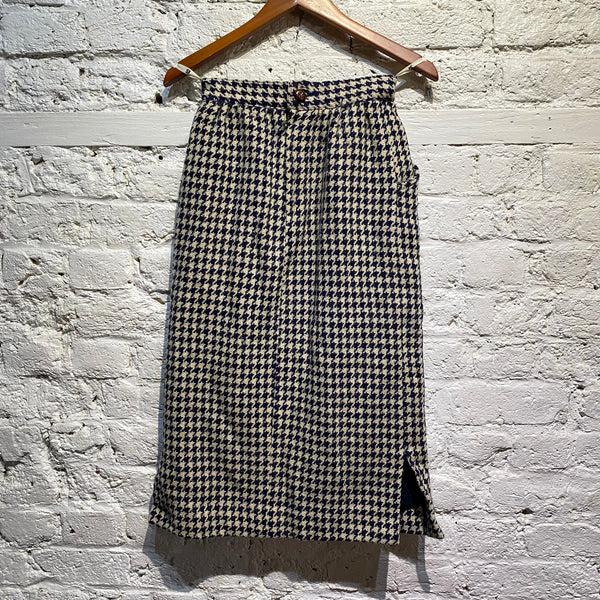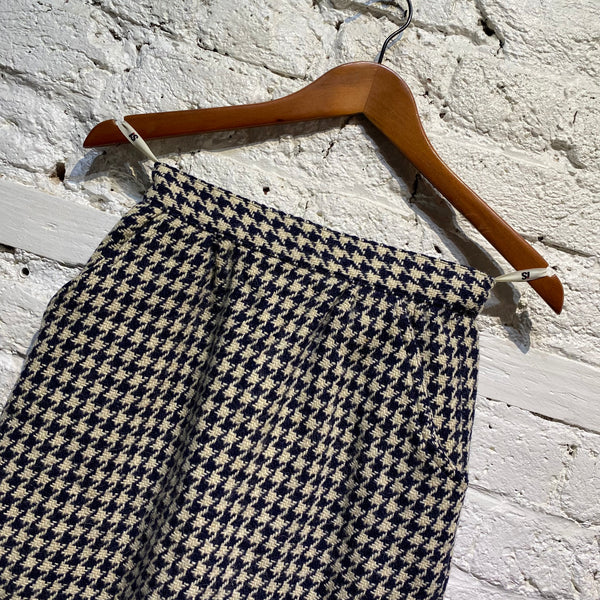 ISSEY MIYAKE VINTAGE I.S. WOOL NAVY HOUNDSTOOTH PENCIL SKIRT