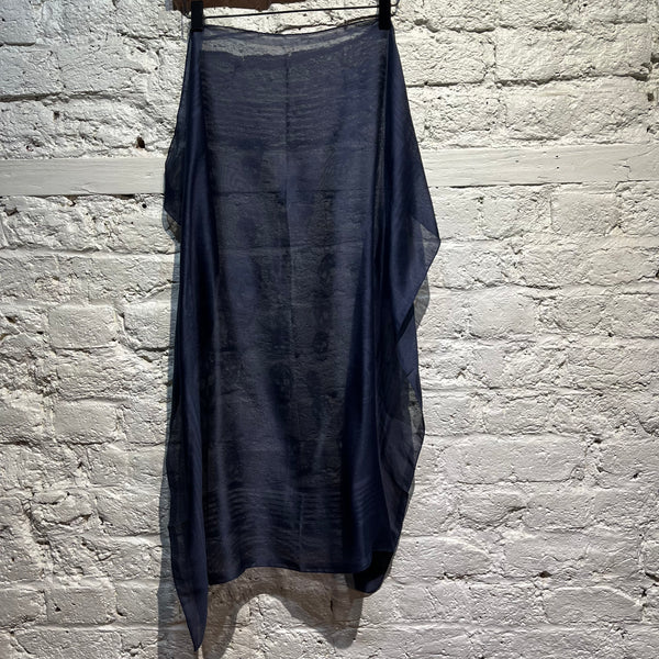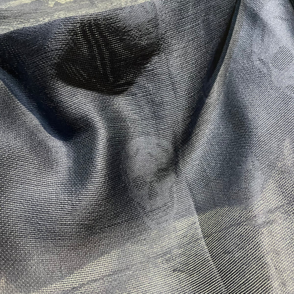 NAVY SILK SCULL SCARF