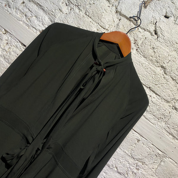 JUNYA WATANABE COMME DES GARÇONS BLACK BOILED WOOL WITH CHIFFON LINING ASYMMETRICAL BUTTONED LONG SLEEVE JACKET