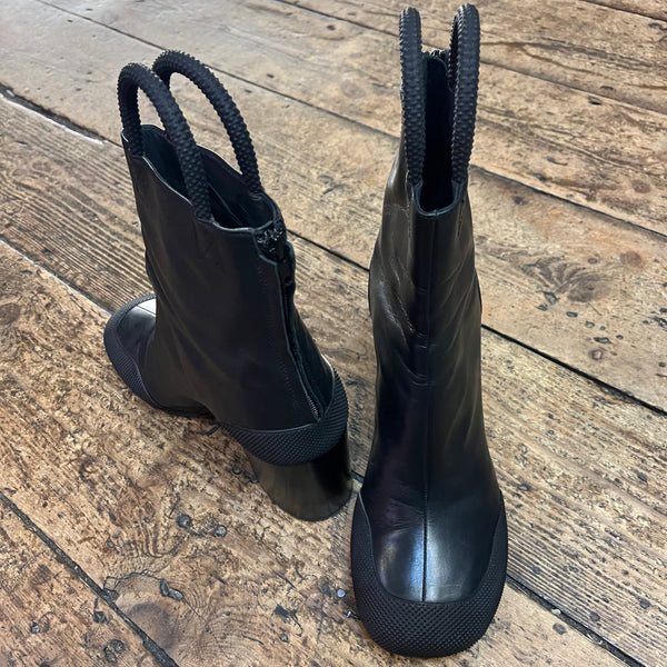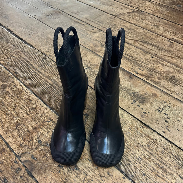 RANDOM IDENTITIES BLACK LEATHER & RUBBER WORKER BOOTS