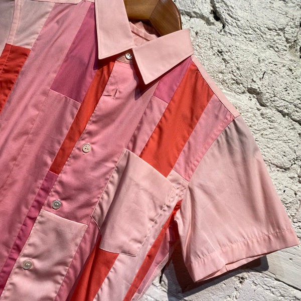 COMME DES GARÇONS SHIRT PINK/WHITE PAYCHWORK COTTON S/S SHIRT