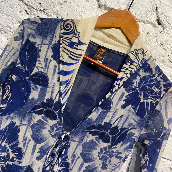 JEAN PAUL GAULTIER SOLEIL BLUE WHITE MESH WRAP CARDIGAN