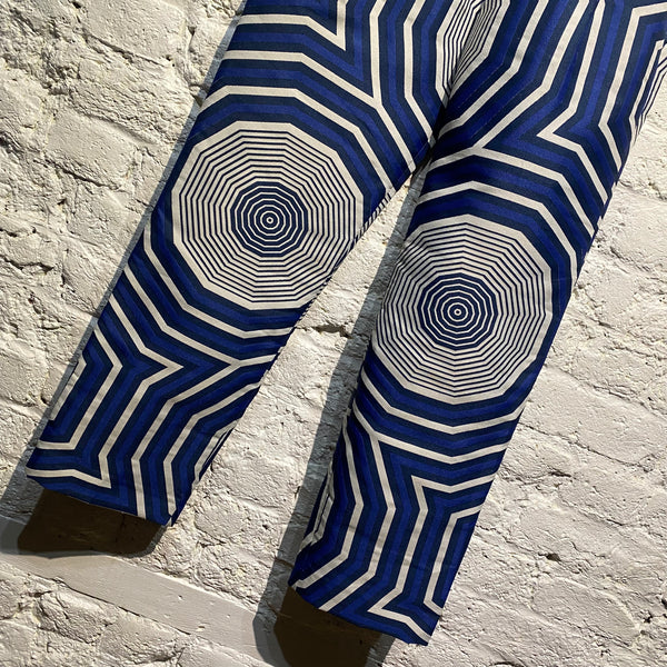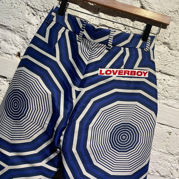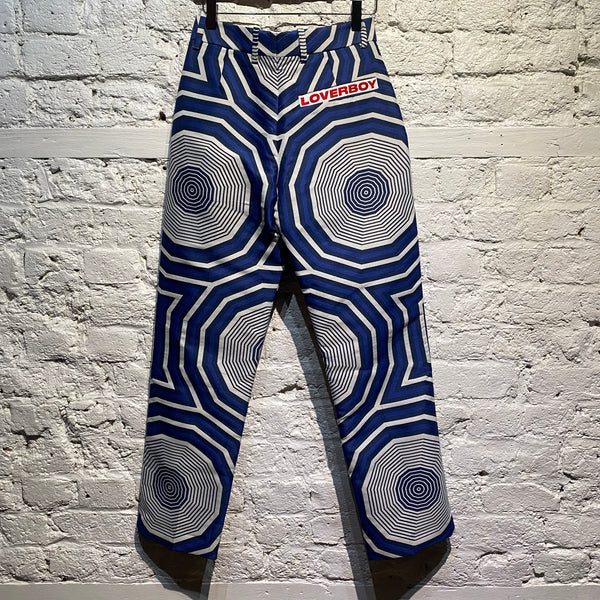 CHARLES JEFFREY LOVERBOY BLUE GRAPHIC PRINT WOVEN TROUSERS