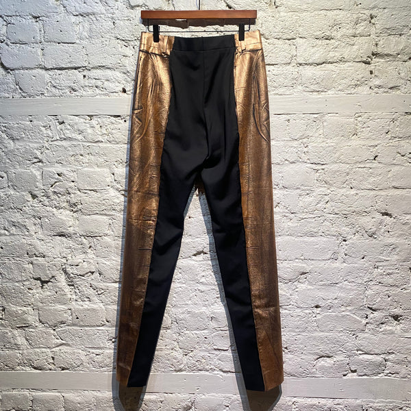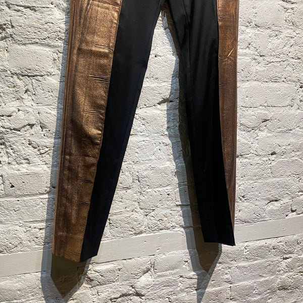 MARGIELA BLACK TROUSERS BRONZE PAINT STRIPED TROUSERS