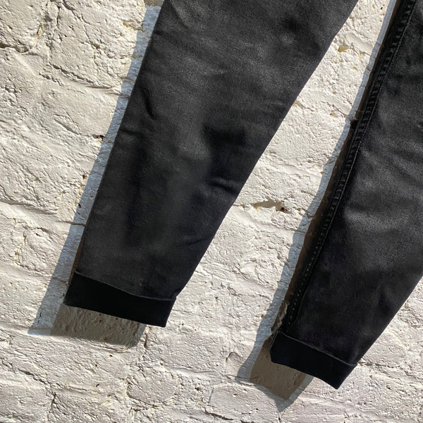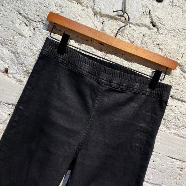 RICK OWENS DARK SHADOWS BLACK STICK CUT COATED COTTON STRETCH TROUSERS