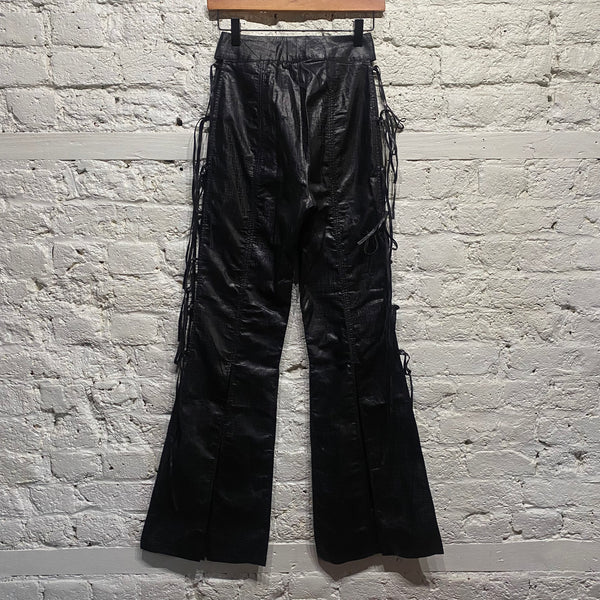 SUPER YAYA BLACK LACE UP SPLIT FLARED TROUSERS