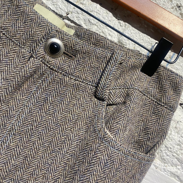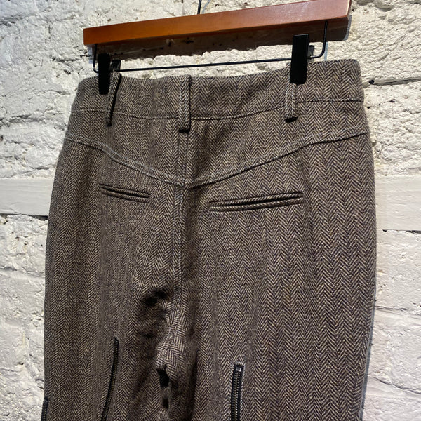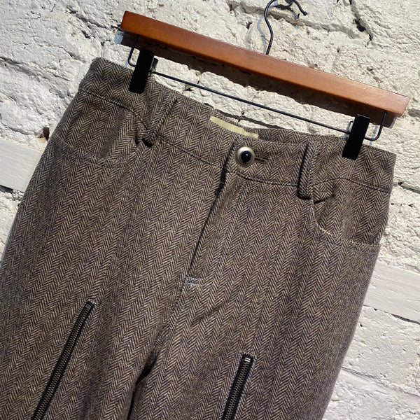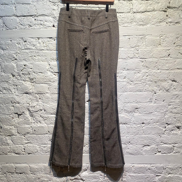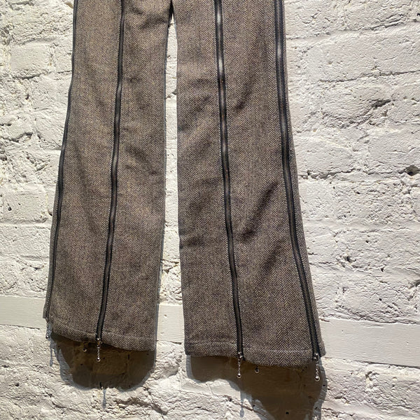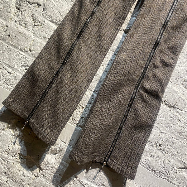 ANDERSSON BELL GREY/TAUPE HERRINGBONE WOOL ZIP UP BELL TROUSERS