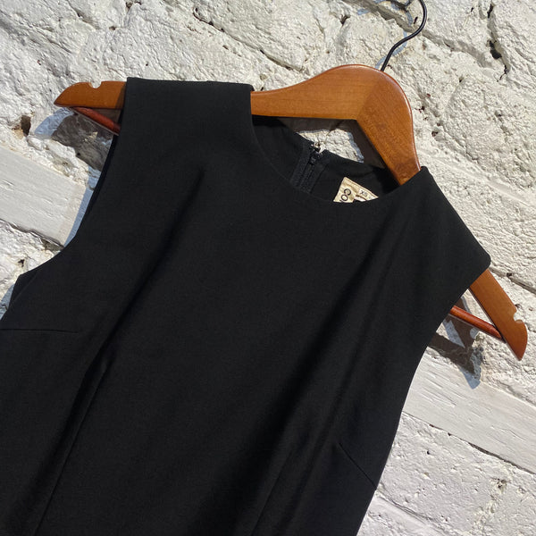 COMME DES GARÇONS BLACK SLEEVELESS KNEE LENGTH LIGHT WOOL DRESS