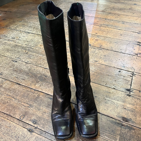 COSTUME NATIONAL BLACK LEATHER BOOTS