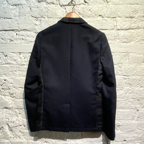 DONNA KARAN NEW YORK DKNY NAVY CHECK/PLAIN WOOL JACKET