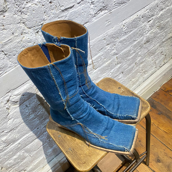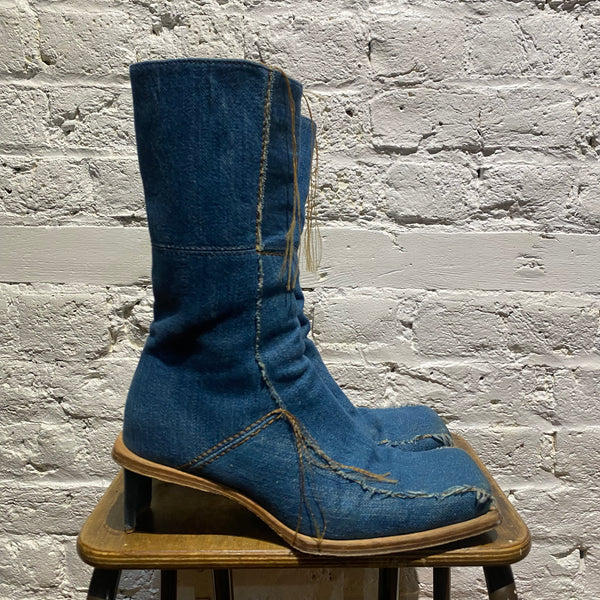 KATHERINE HAMNETT VINTAGE NAVY BRODERIE ANGLAISE TROUSERS