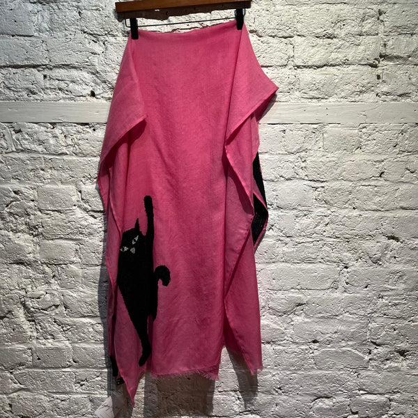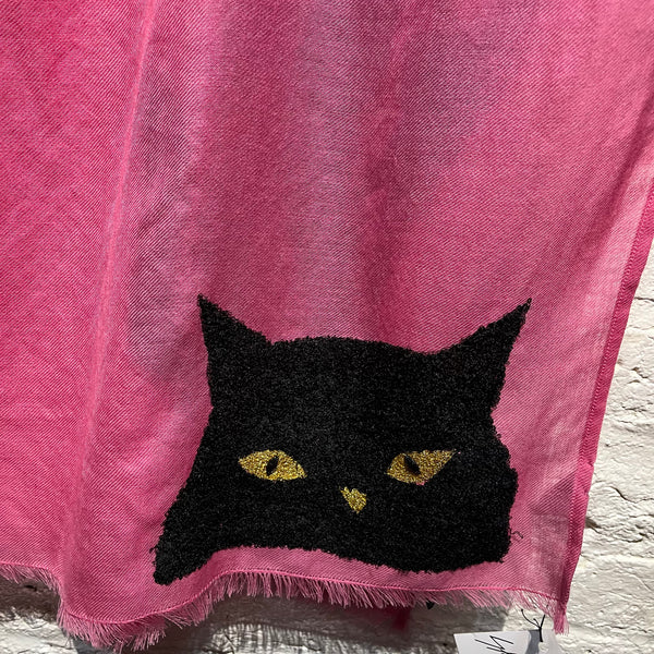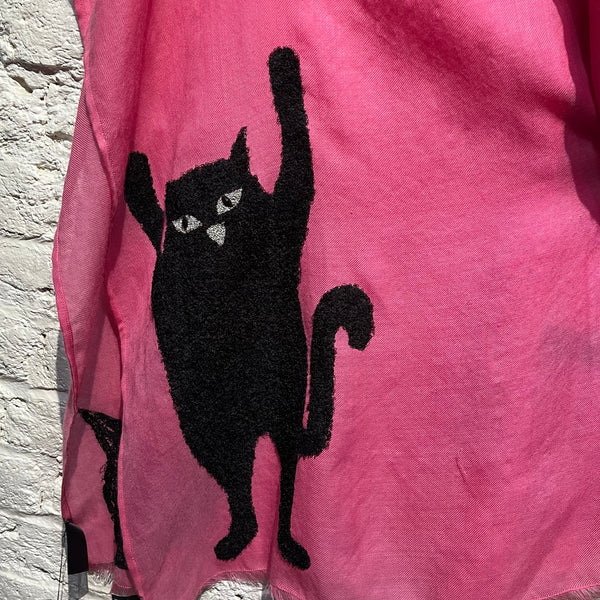 PINK WOOL SCARF BLACK CAT EMBROIDERY