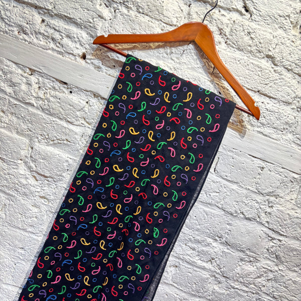 PAUL SMITH PS BLACK SCARF MULTI COLOURED STITCHING DETAIL