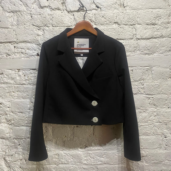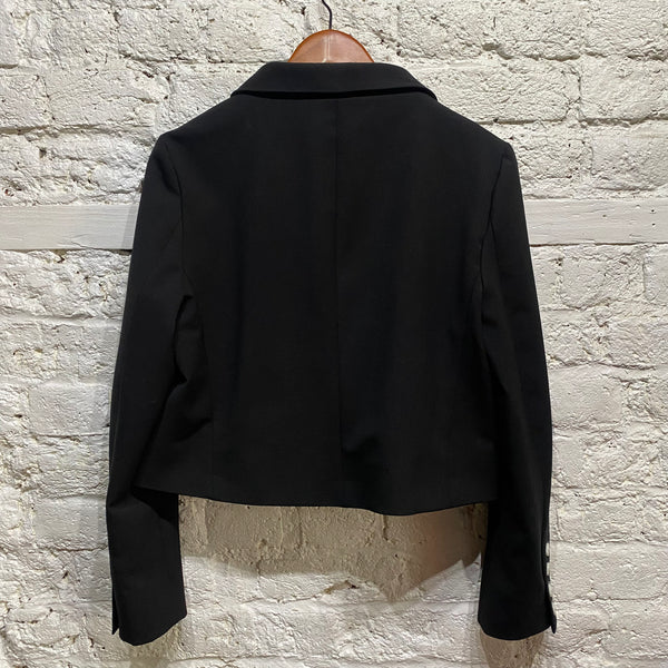 JUNYA WATANABE COMME DES GARÇONS BLACK BOILED WOOL WITH CHIFFON LINING ASYMMETRICAL BUTTONED LONG SLEEVE JACKET